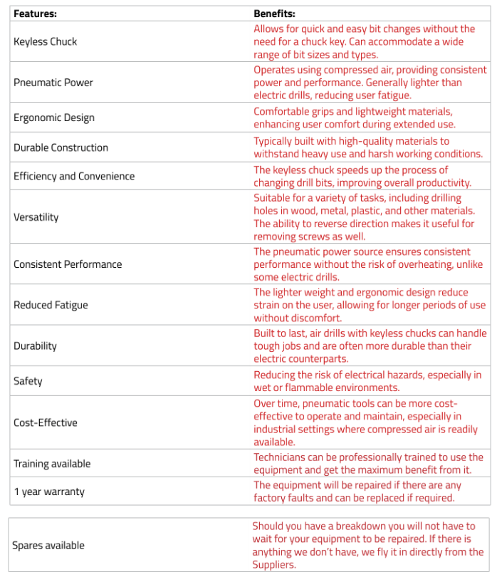 Product: Low speed air drill with keyless chuck