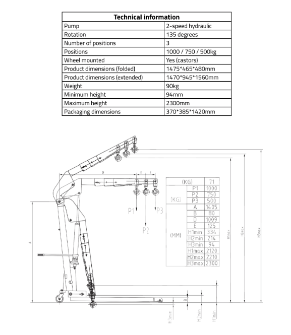 Product:1 Ton foldable engine crane